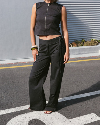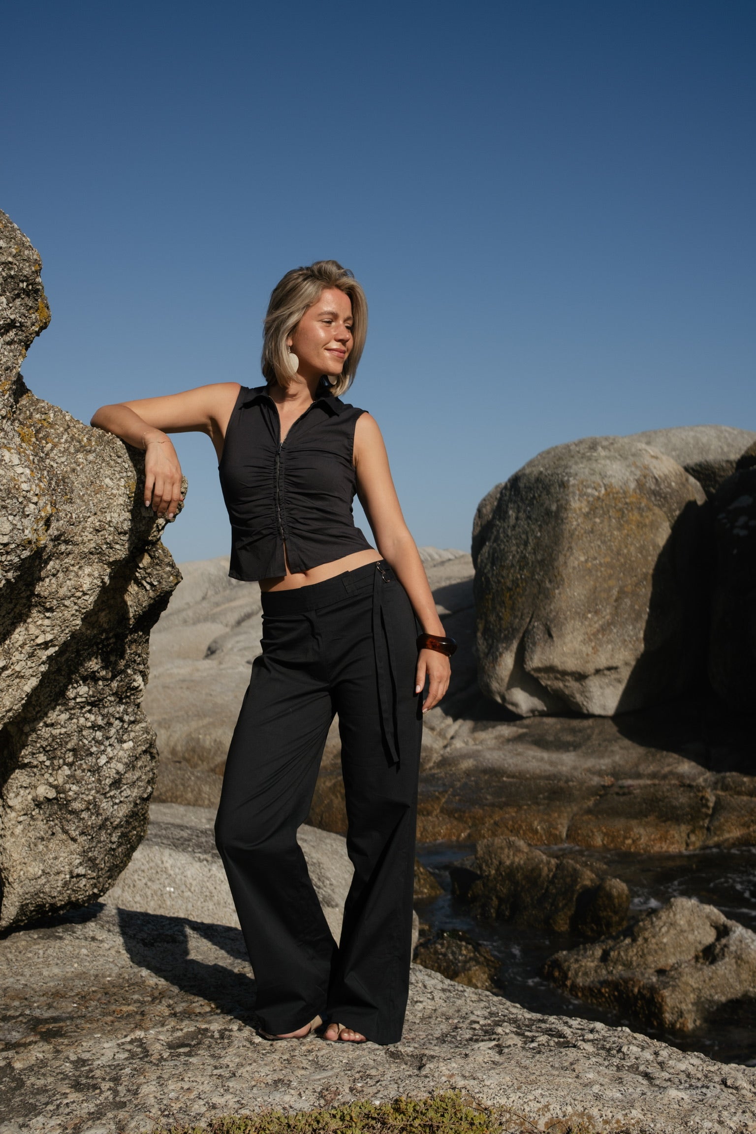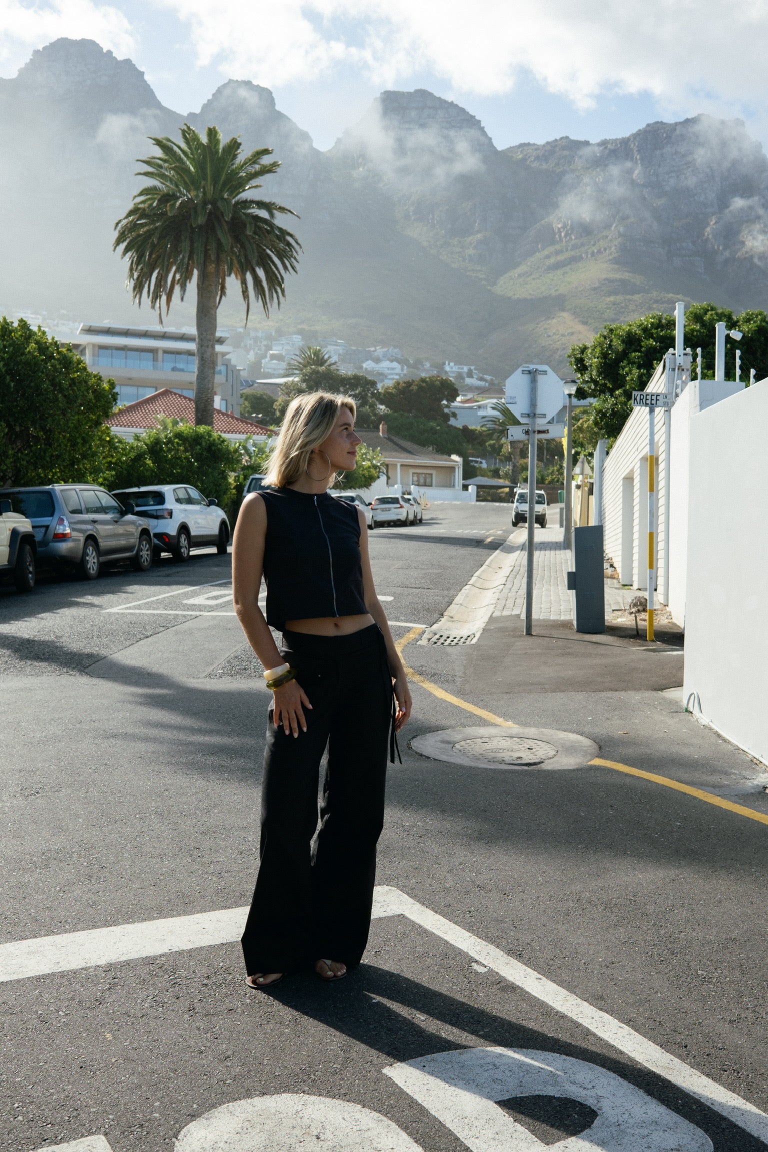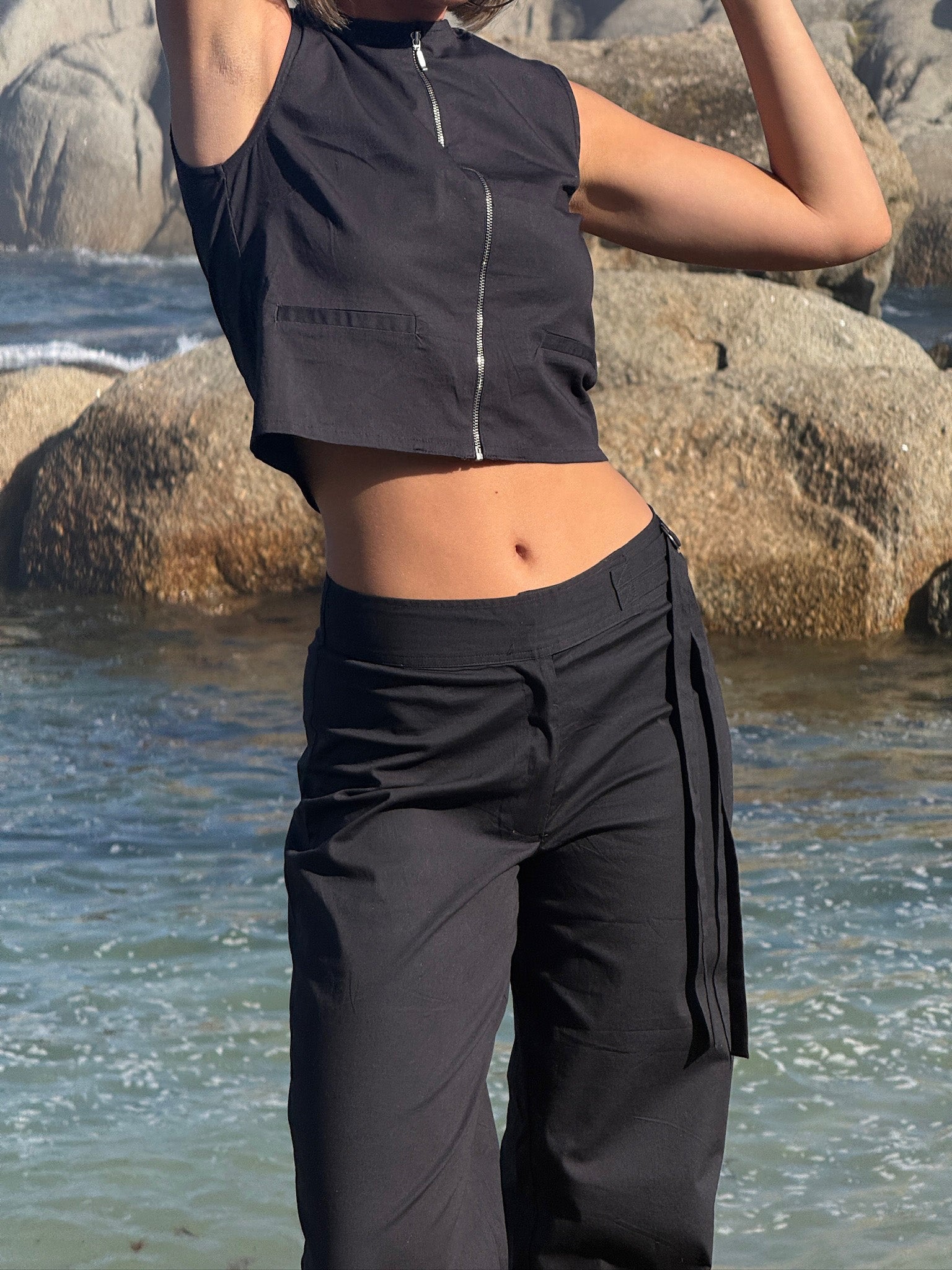 Meet our coolest Lima Pants. These unique pants feature a comfortable loose fit with a zipper and unique waistband with two strings to adjust the fit to your preference. Pair them with our Mila Top or Lima Top for the perfect co-ord set. Made of a soft cotton blend with a little stretch, available in three sizes.