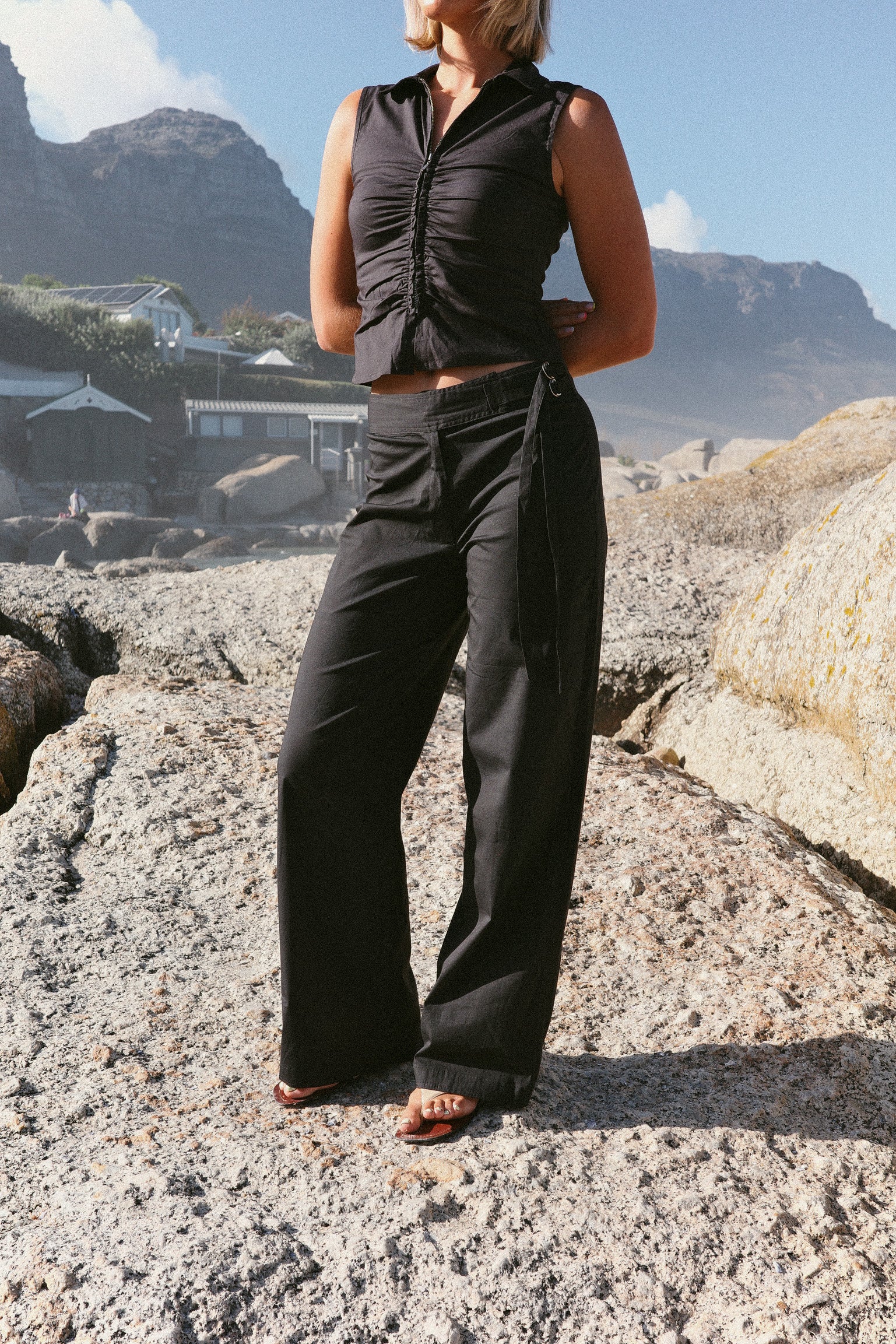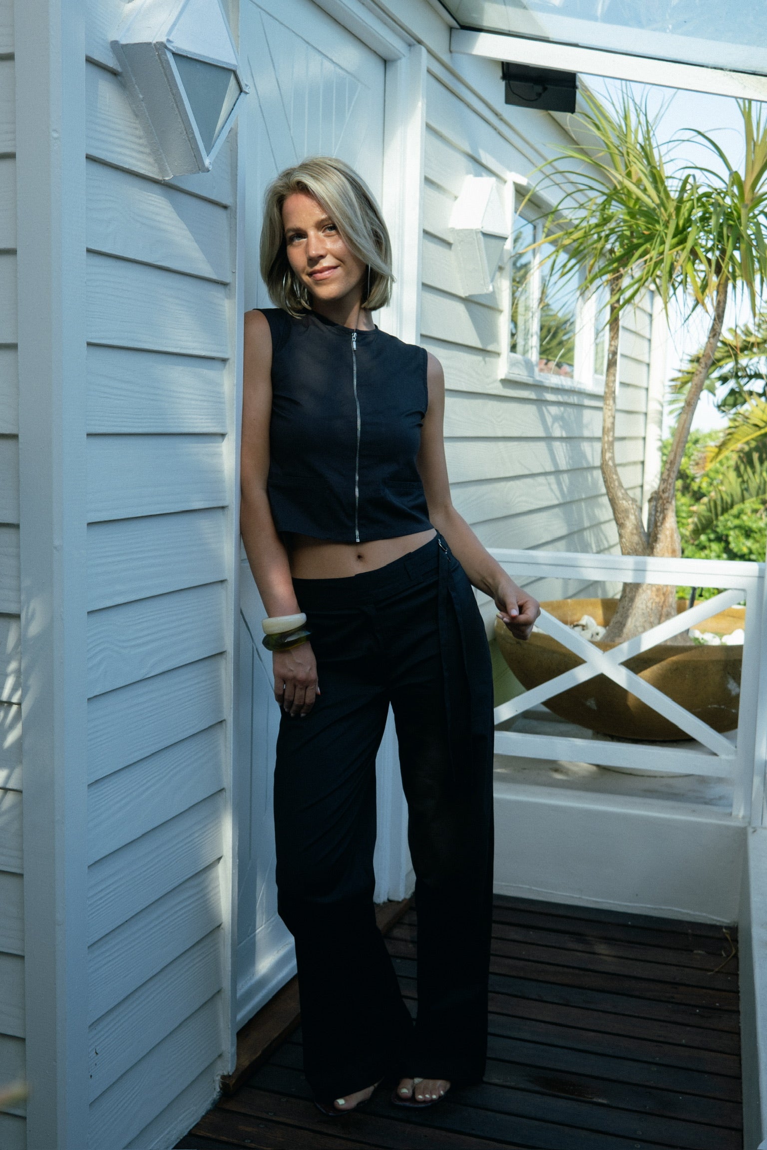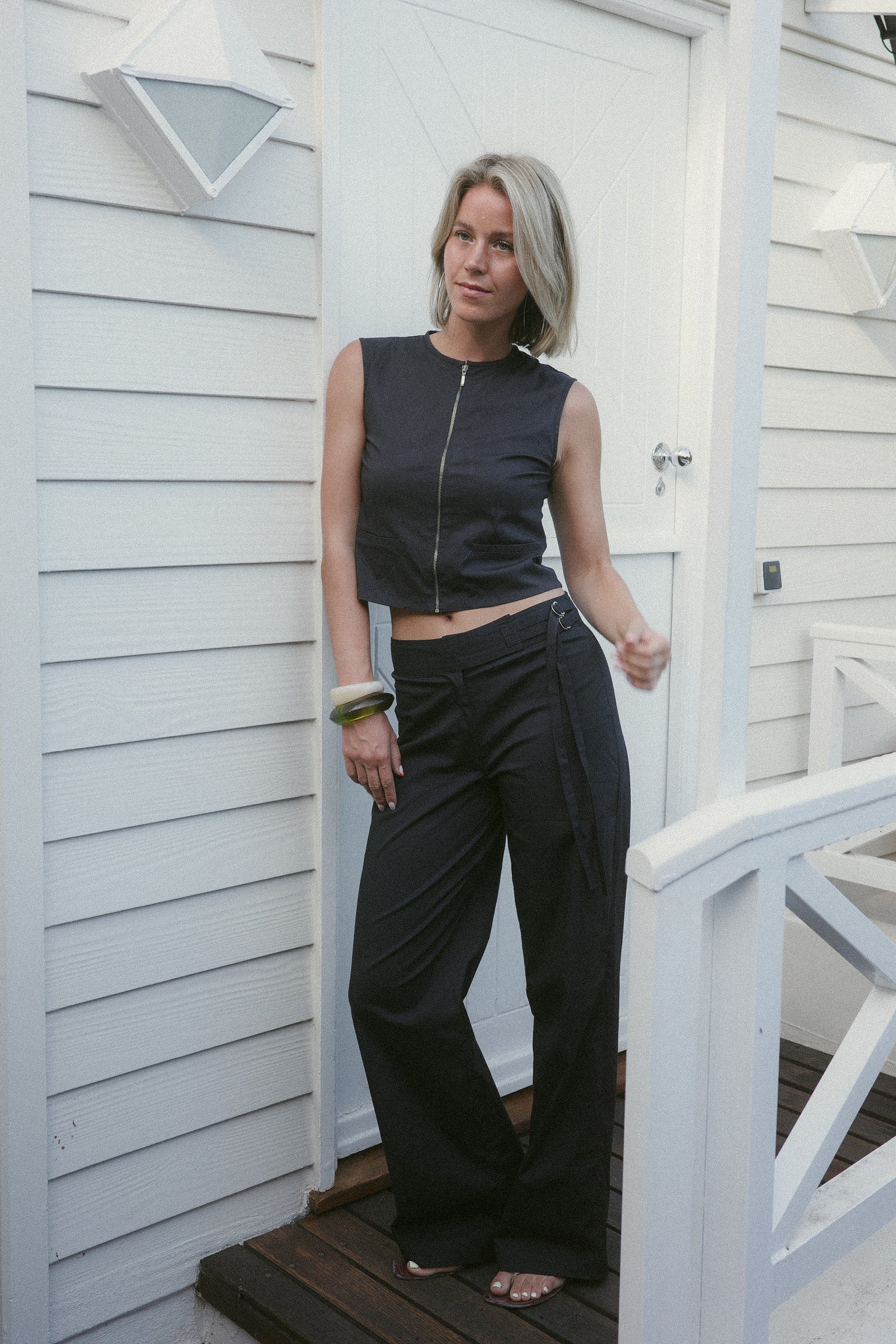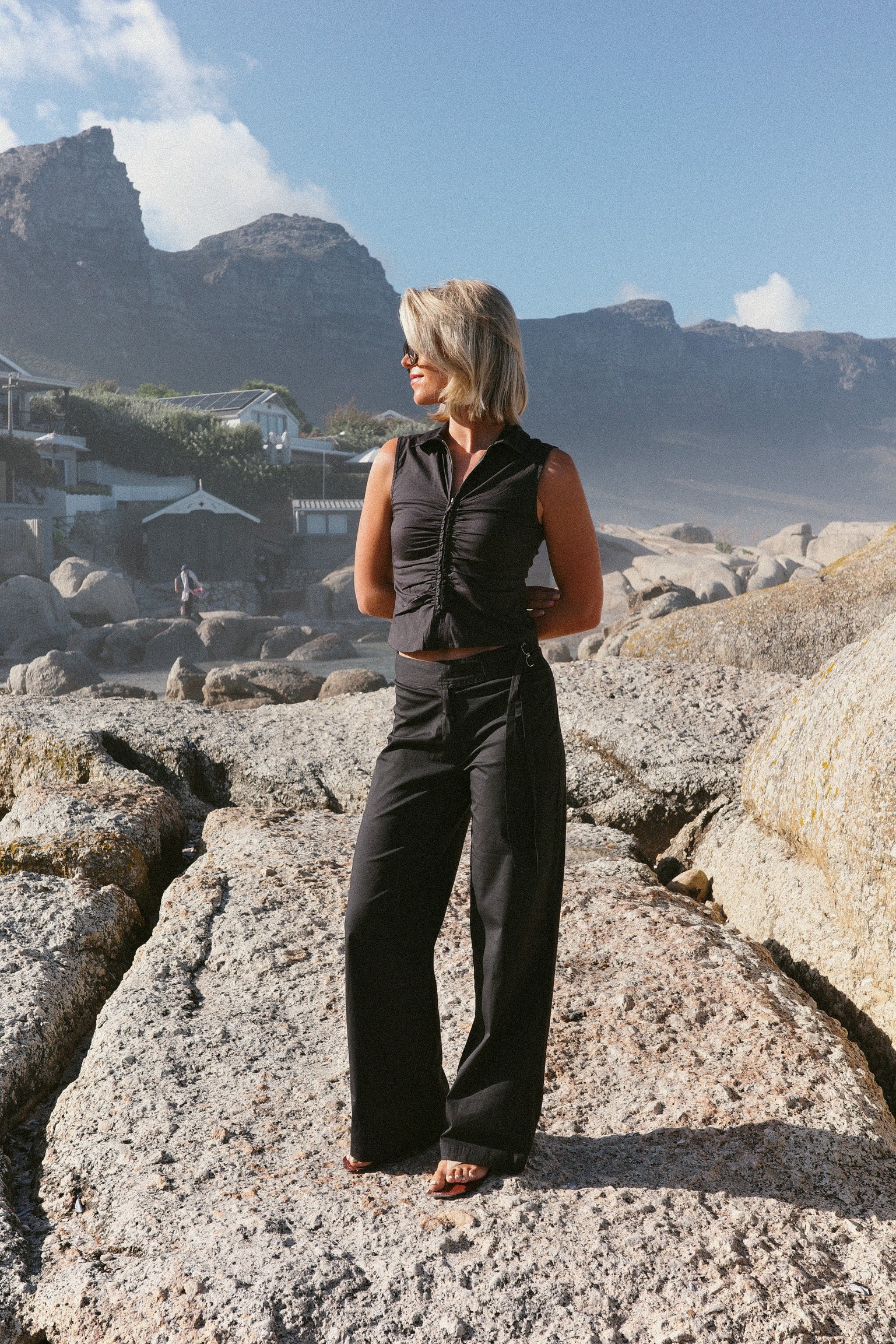 Meet our coolest Lima Pants. These unique pants feature a comfortable loose fit with a zipper and unique waistband with two strings to adjust the fit to your preference. Pair them with our Mila Top or Lima Top for the perfect co-ord set. Made of a soft cotton blend with a little stretch, available in three sizes.