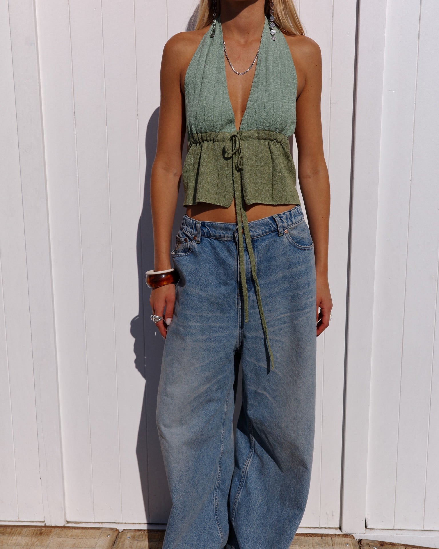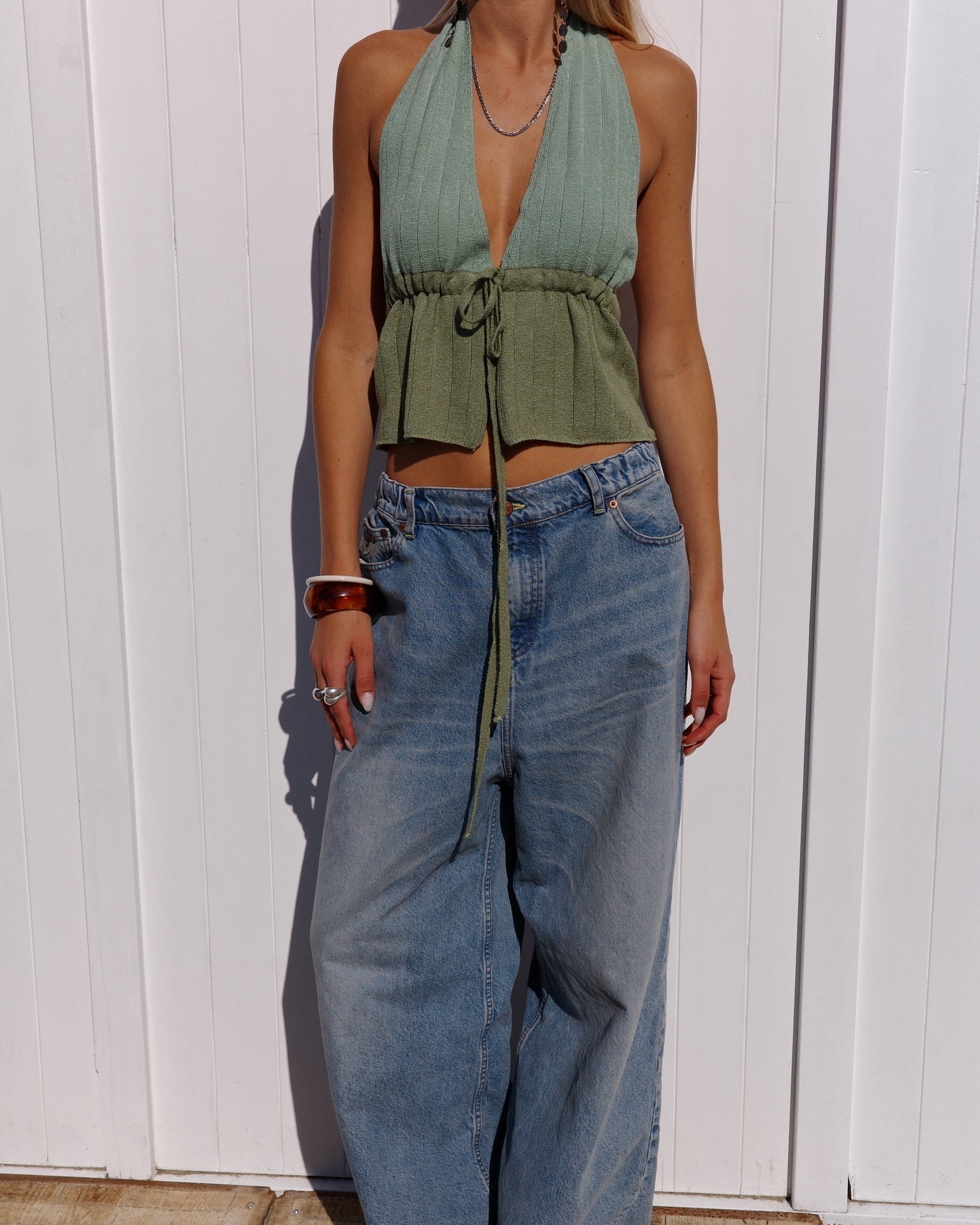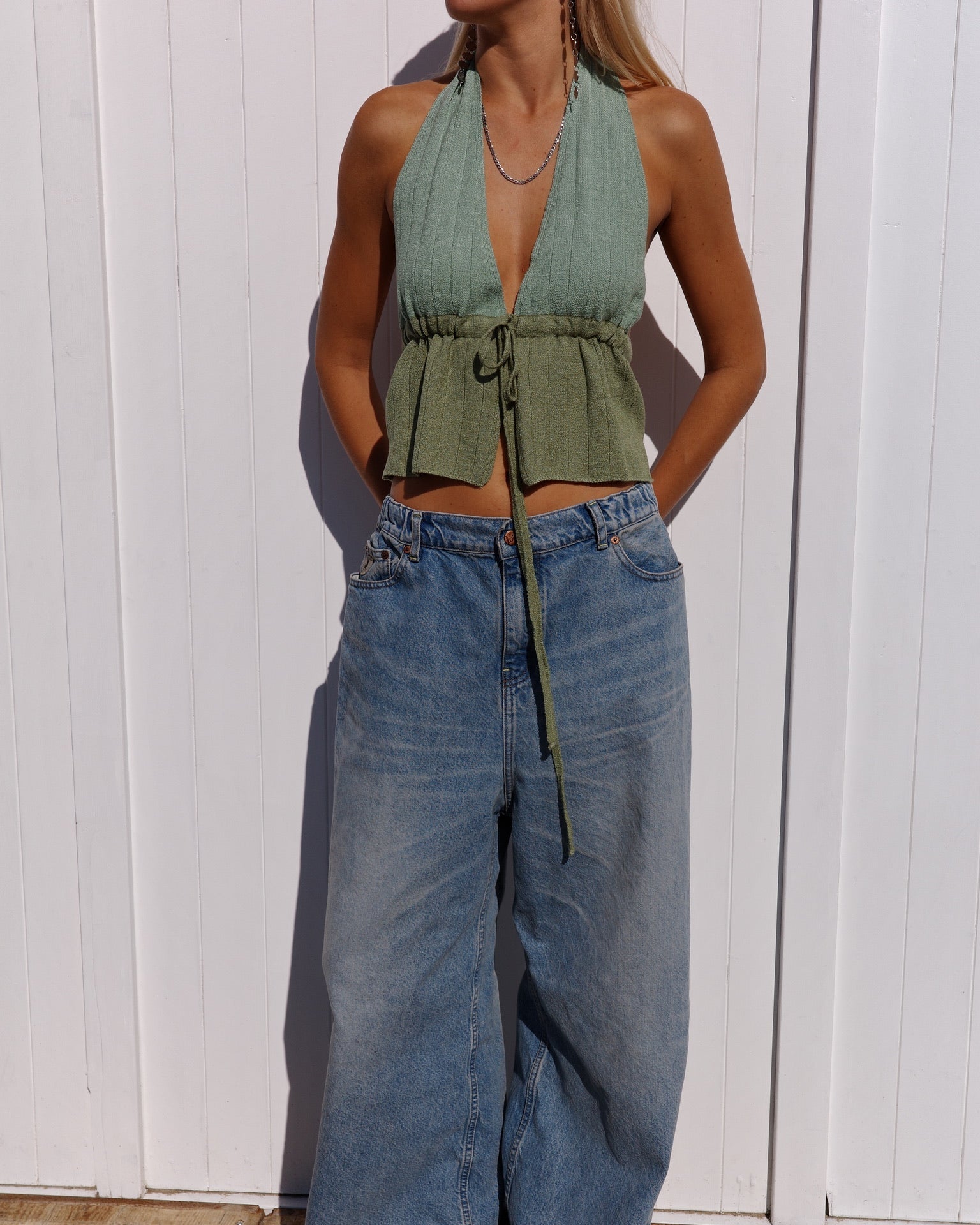 Nuestro top Layla: este top halter de color en contraste está hecho de material de rayón elástico y tiene un Hermosa espalda abierta. El top se puede atar en el cuello y por delante, entre el pecho.