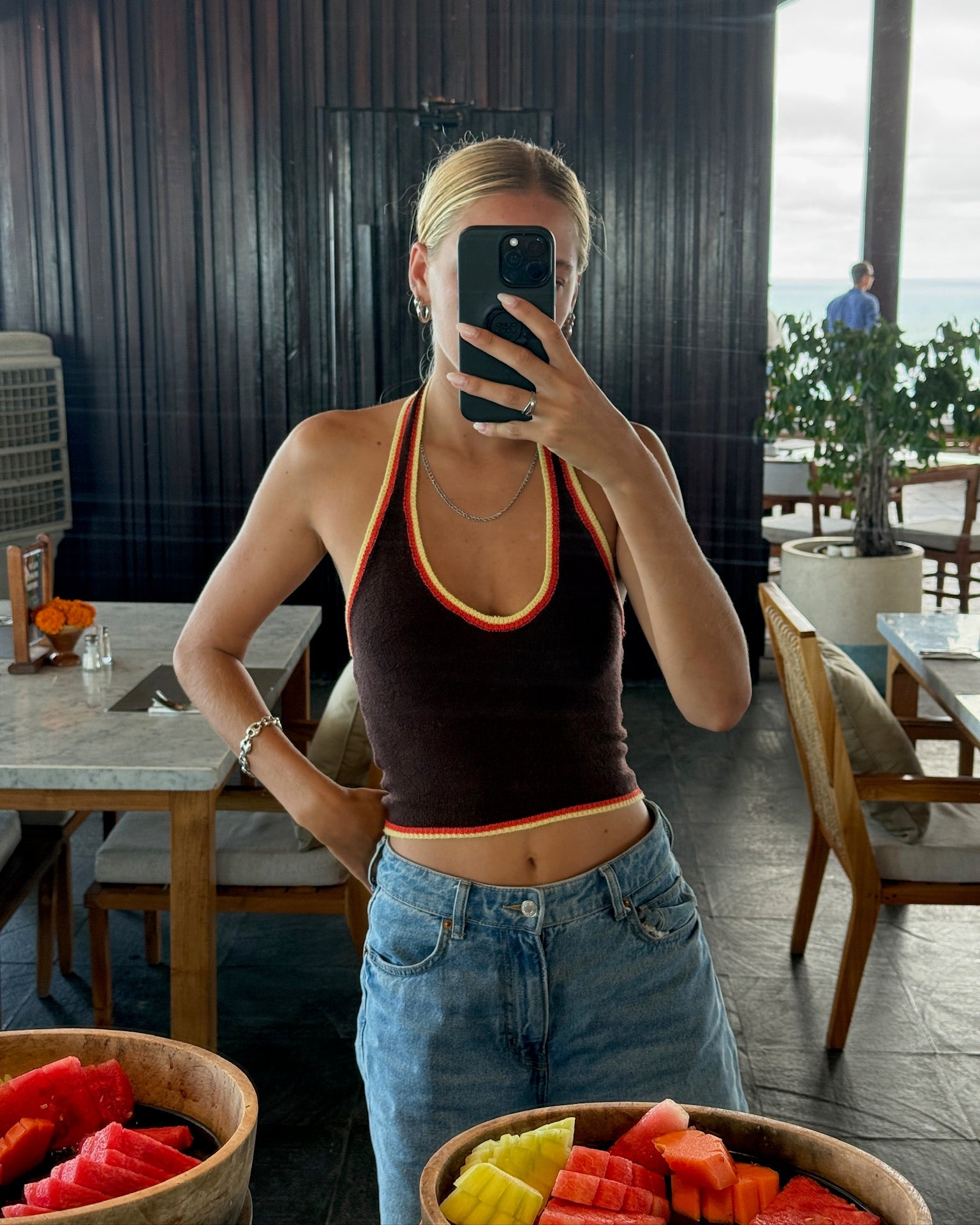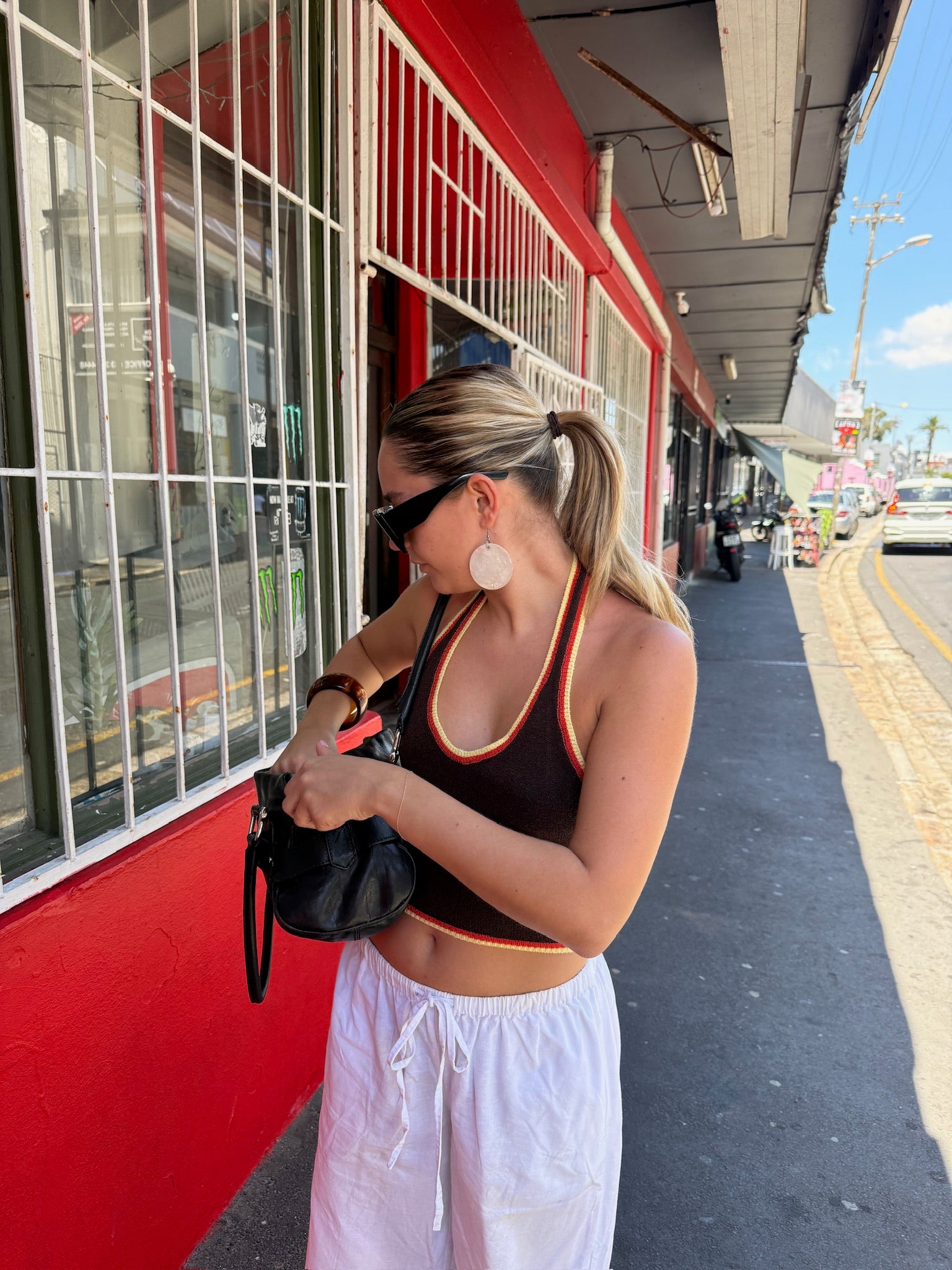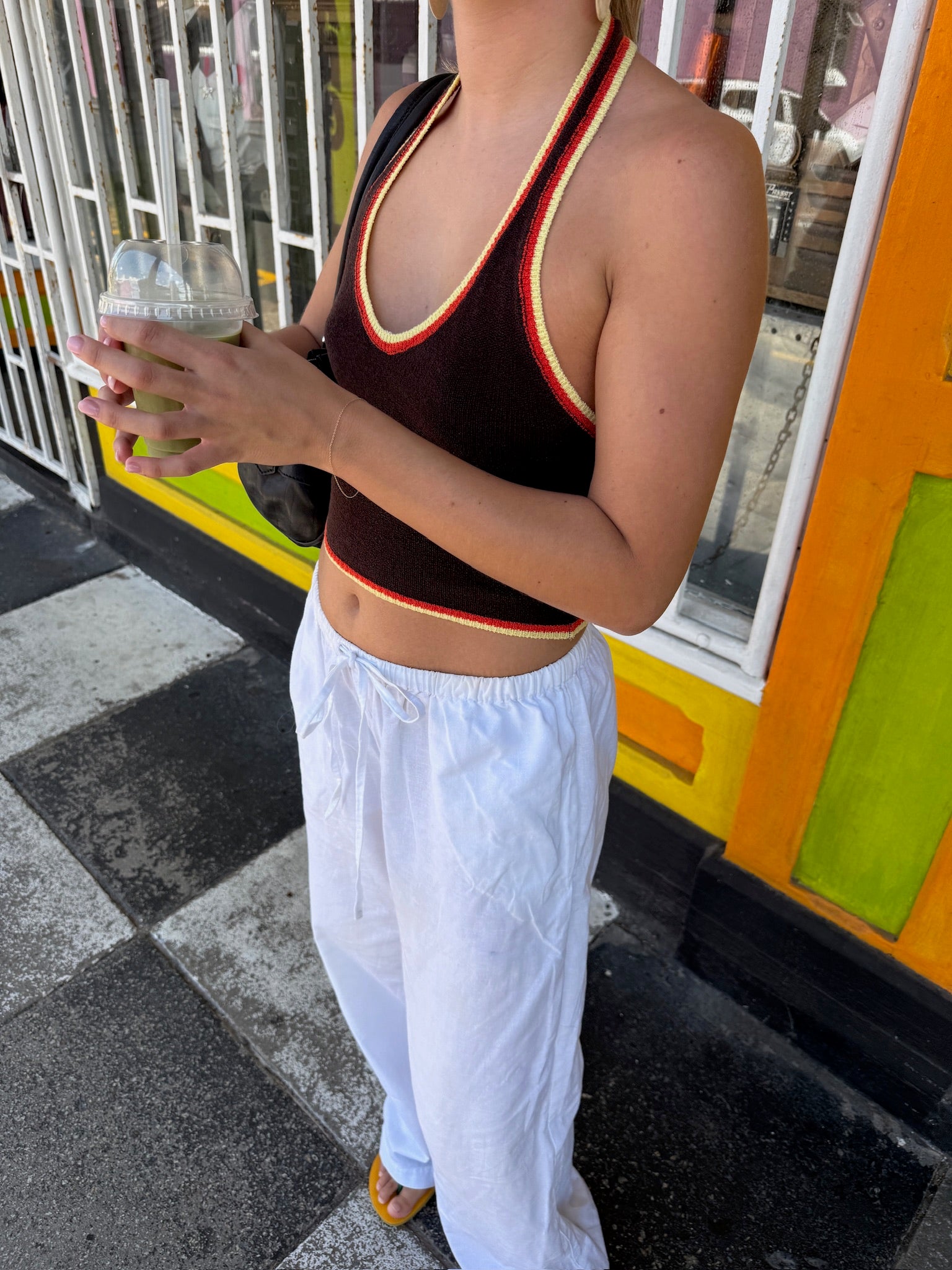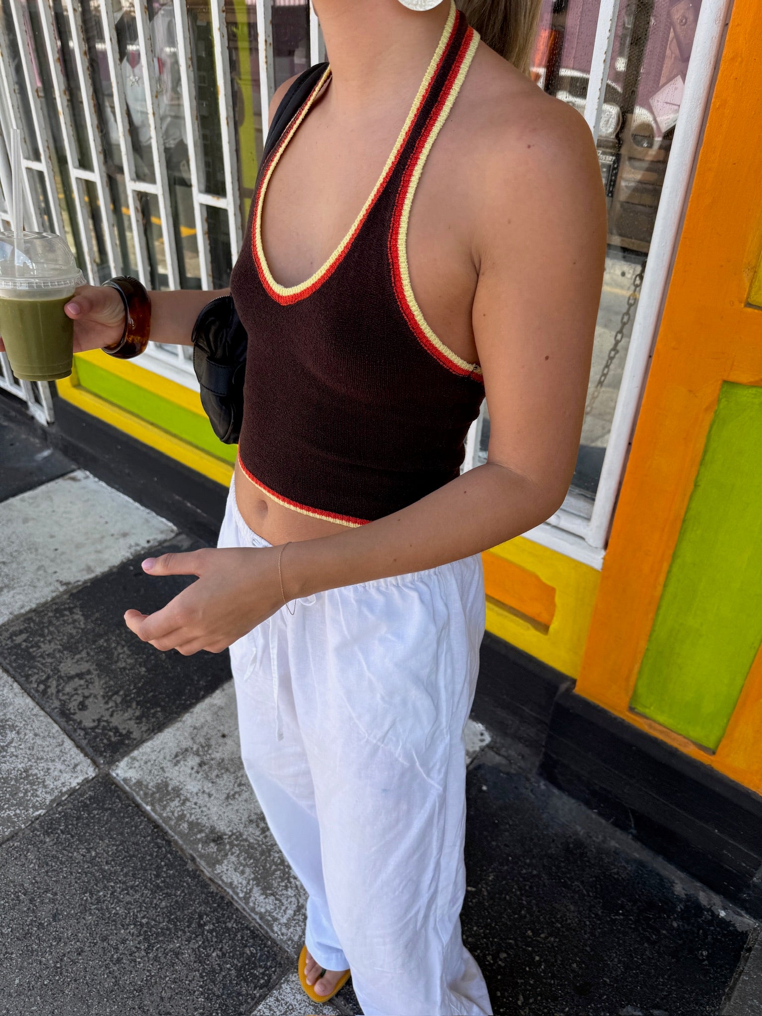 Nuestro top Layla: este top halter de color en contraste está hecho de material de rayón elástico y tiene un Hermosa espalda abierta. El top se puede atar en el cuello y por delante, entre el pecho.