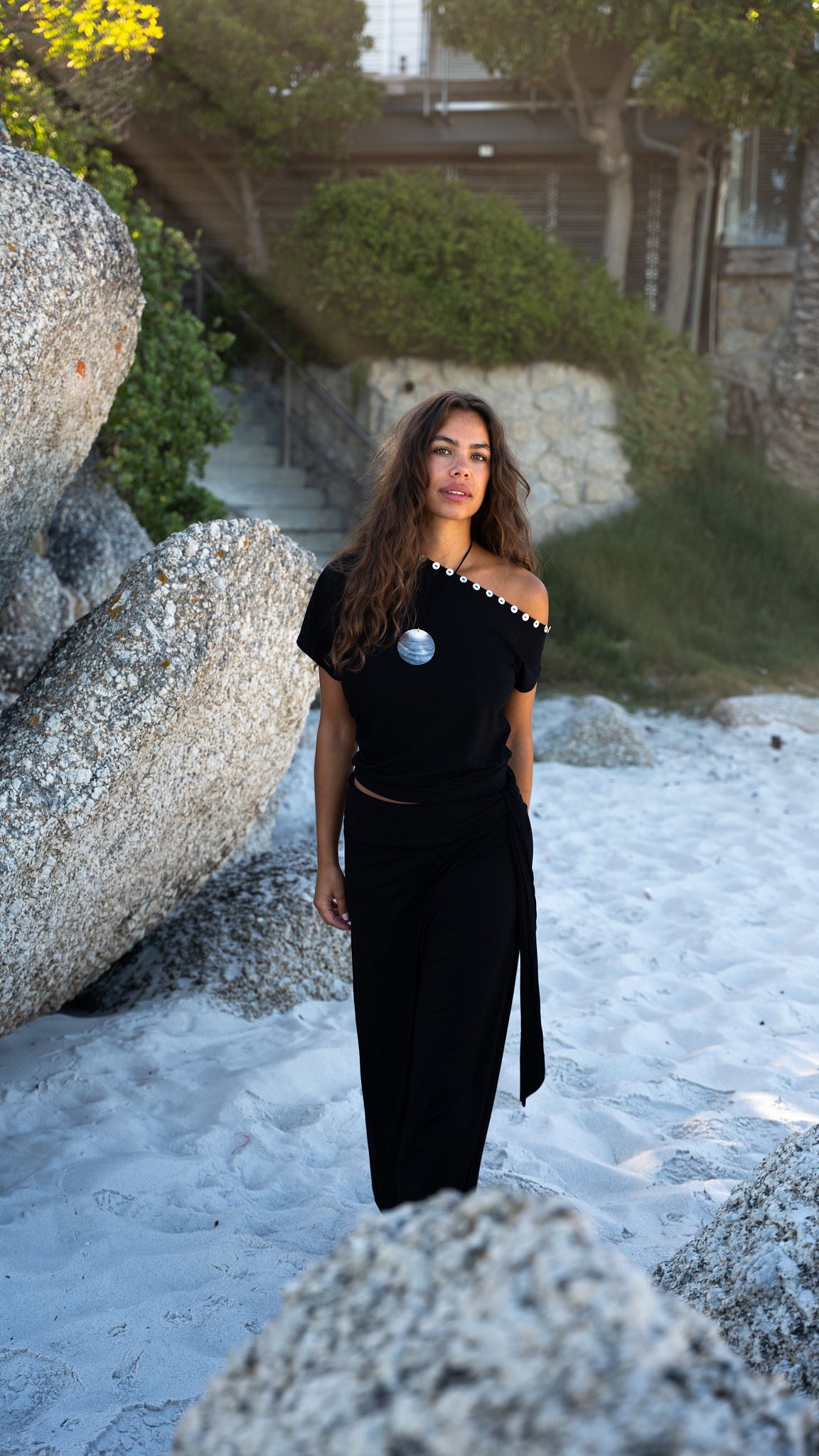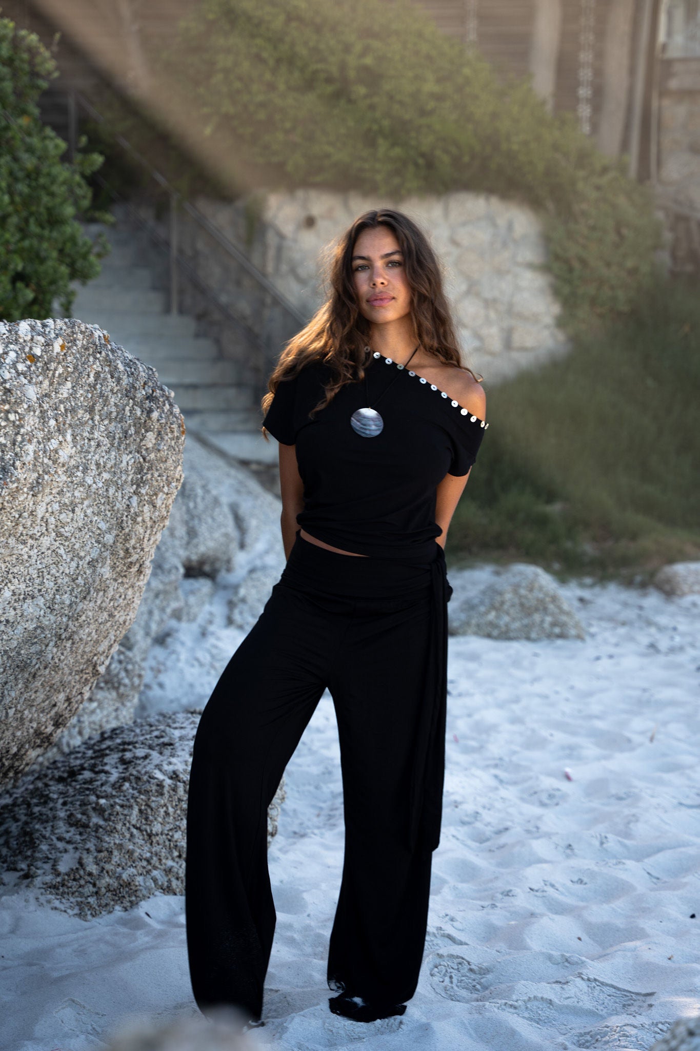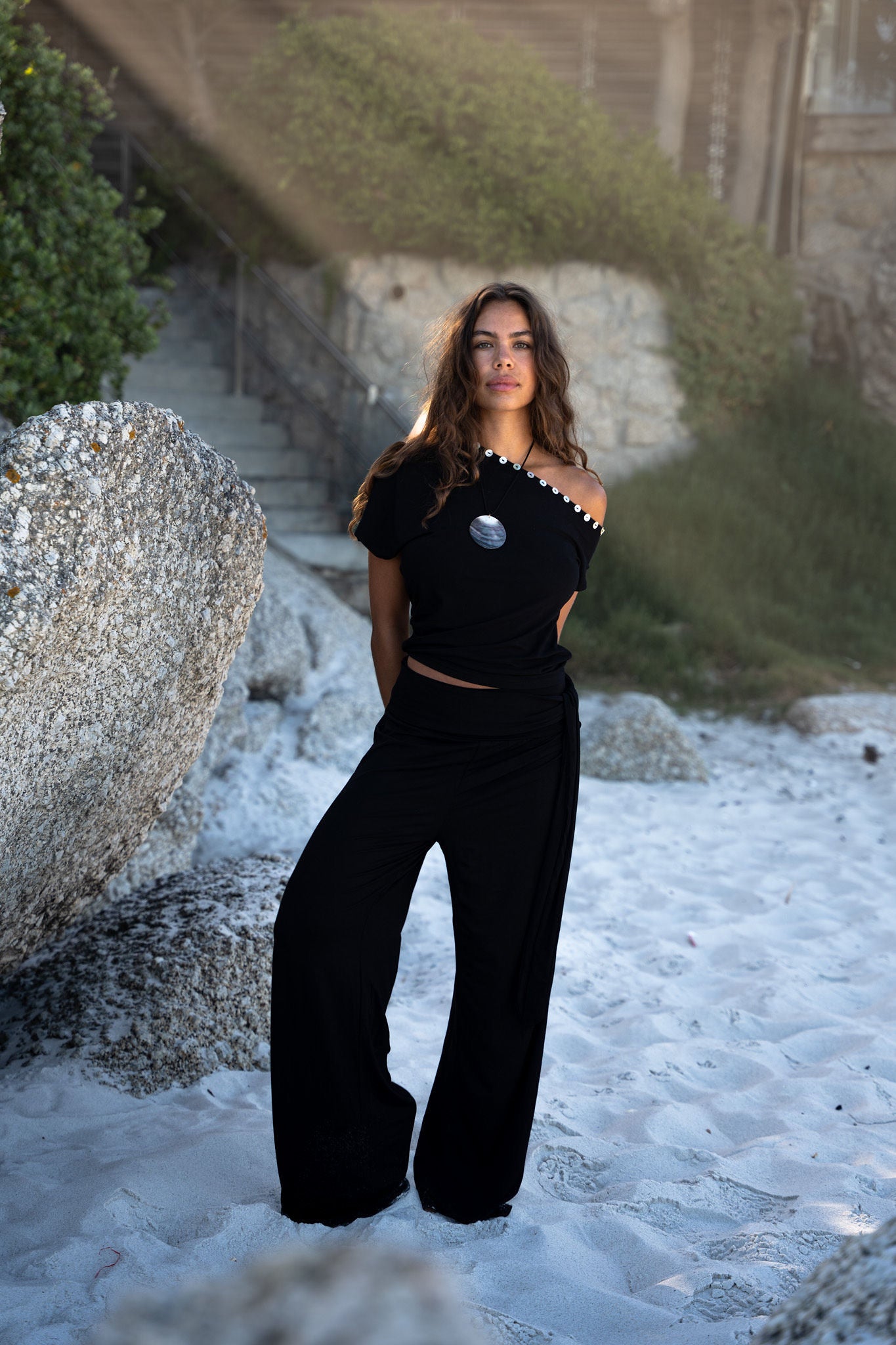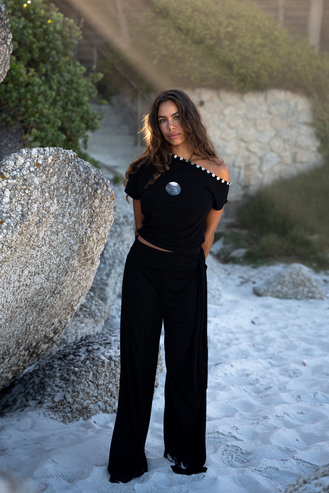Introducing our new Sumba Pants. This super stretchy and long pants pants has two strings on the waistband to tie as you like. The fabric is super soft and comfortable. The perfect pants for a sunny day in the city or on vacation. The cutest set with our July Top.